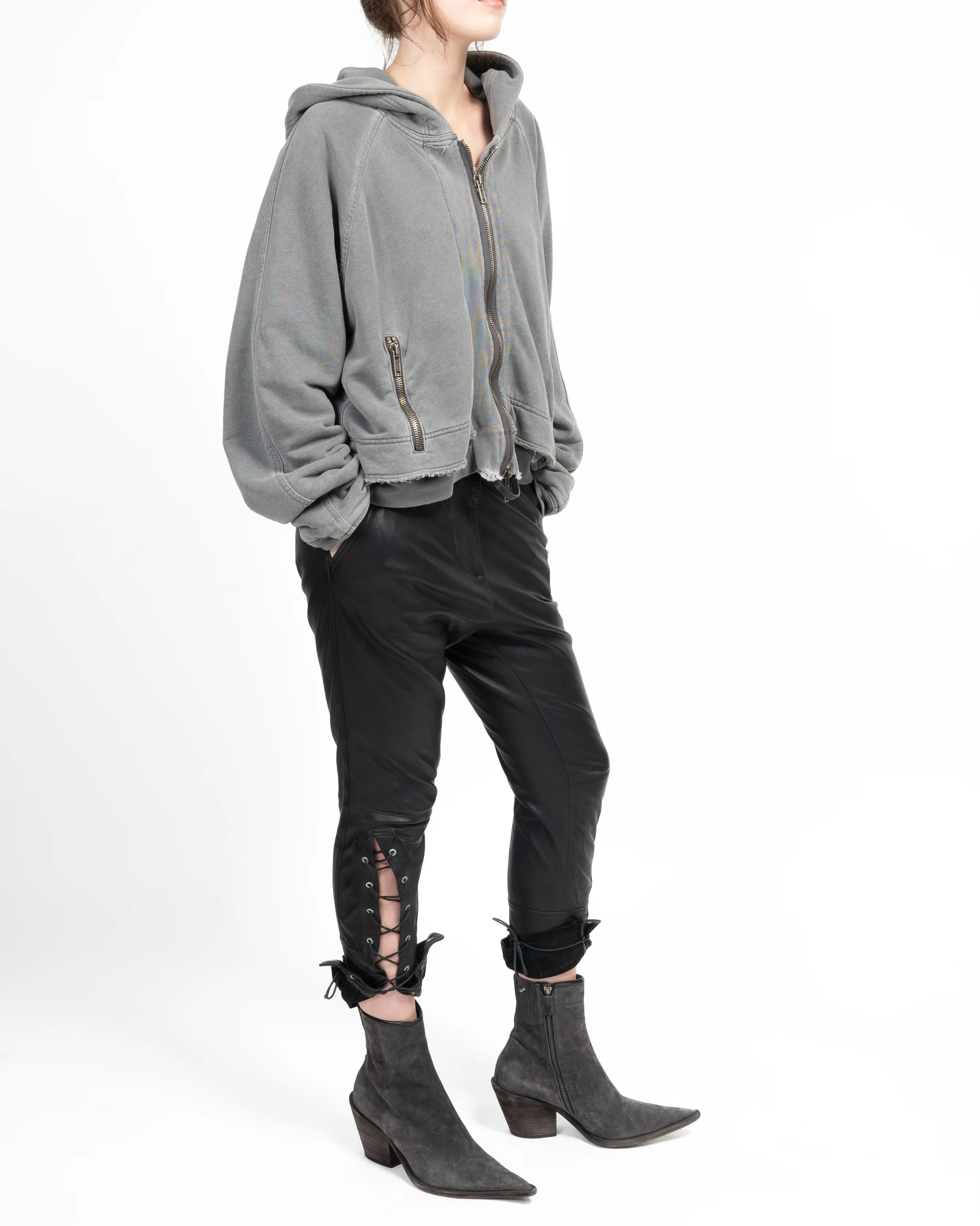 FW14 Distressed Cropped Zip-Hoodie in Washed Grey Perth Cotton