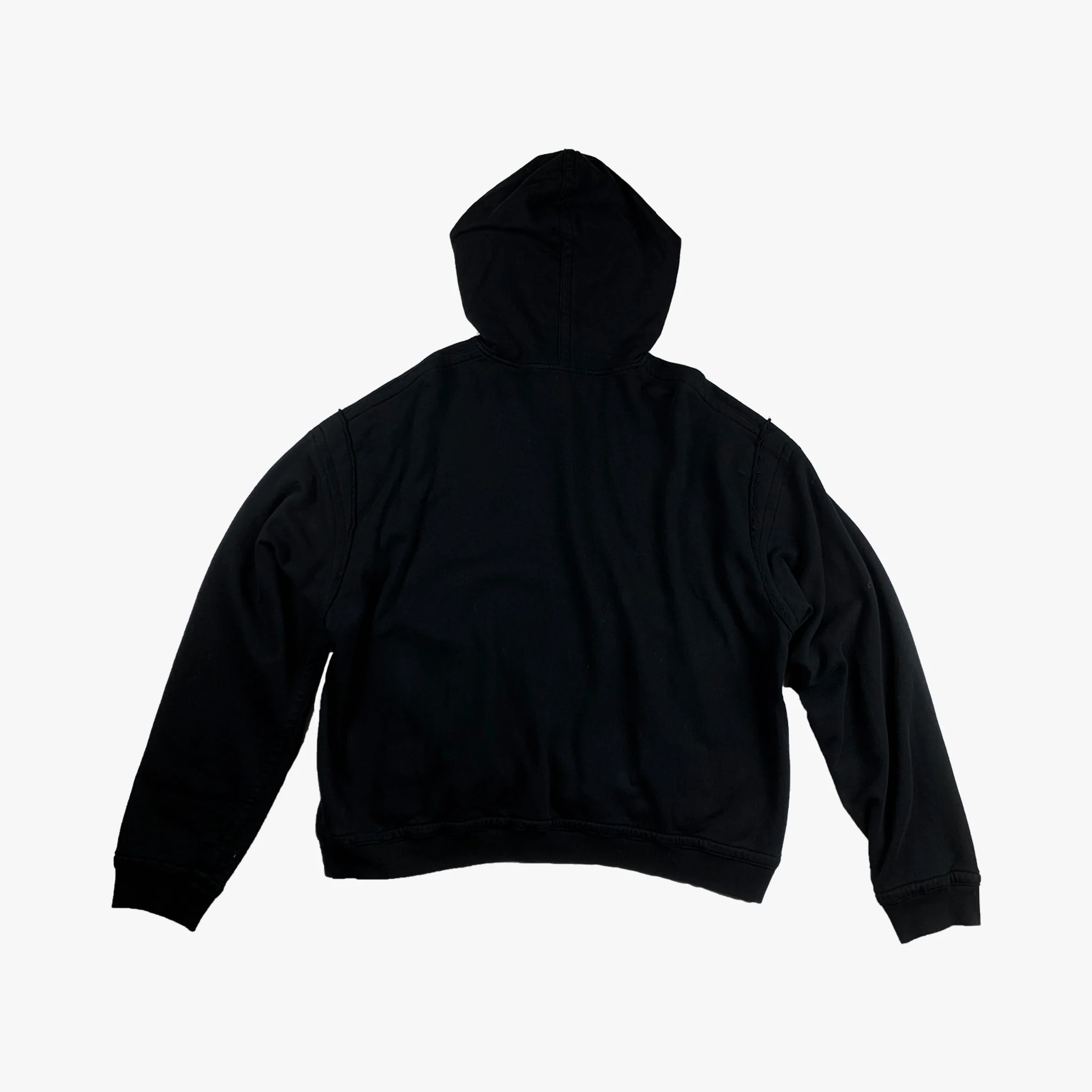 Fall Winter 2018 also introduced some of the coolest hoodies we've seen from him in recent years. His Perth hoodies are always some of the most desirable pieces from his collections & this oversized black hoodie is no exception. It is made out of French Terry cotton and cut pretty oversized while still keeping a normal length. It has some hidden pockets on both sides & the seams on the shoulders are distressed for an additional touch.