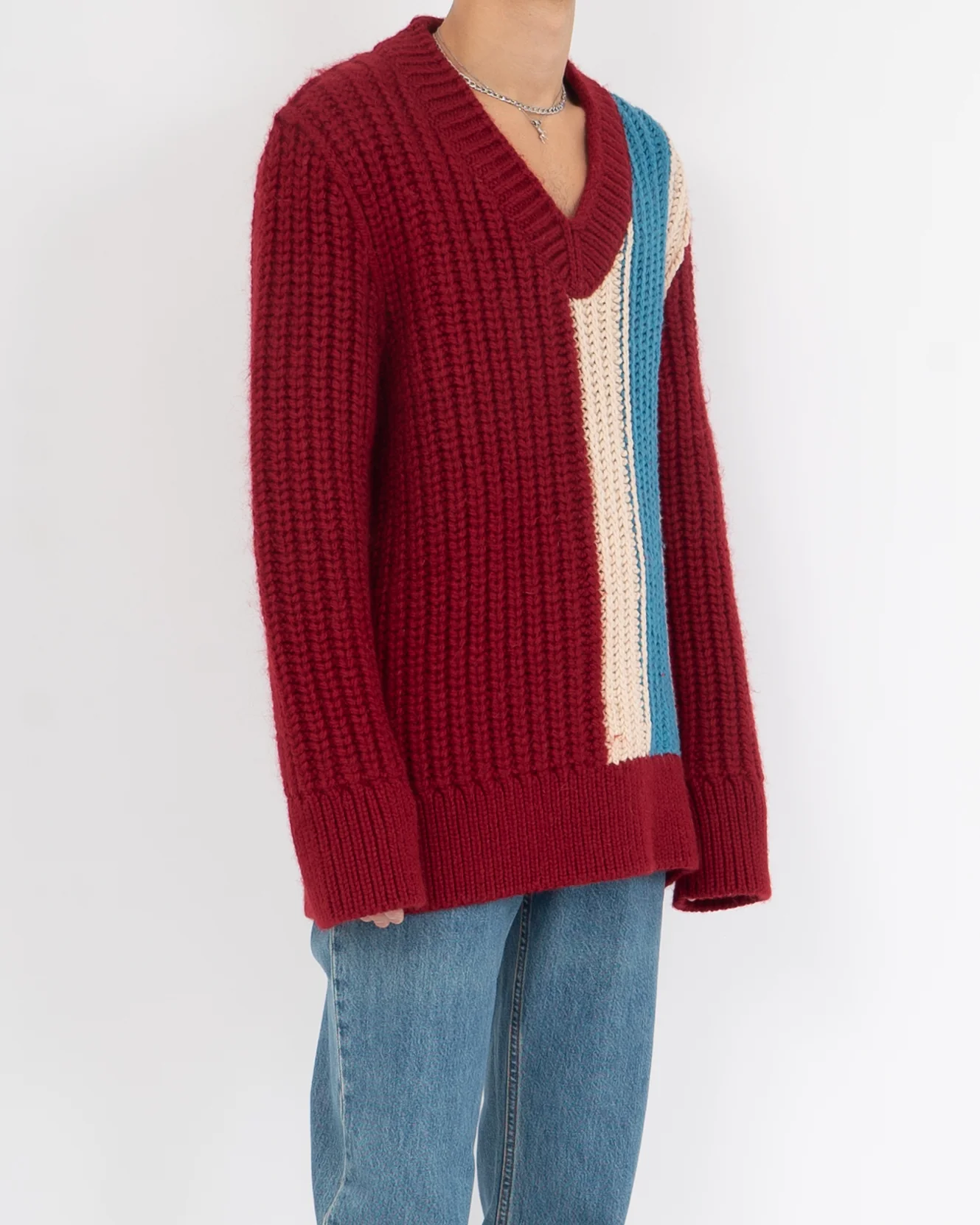 Raf started bringing V-neck back with his knit pieces when he arrived at Calvin Klein. In a time where nobody would do it, he did it and mastered it to full profession, which is made clear with pieces like that. The material of this sweater is much thicker and stiffer than most of his other knit pieces, but that does no harm to the piece itself as the fit is still very adjustable. After all his amazing knit pieces he brought out, it is no wonder that Grailed's Survey about what would become archival fashion in the future, set Calvin Klein 205W39NYC Knitwear on the top position.