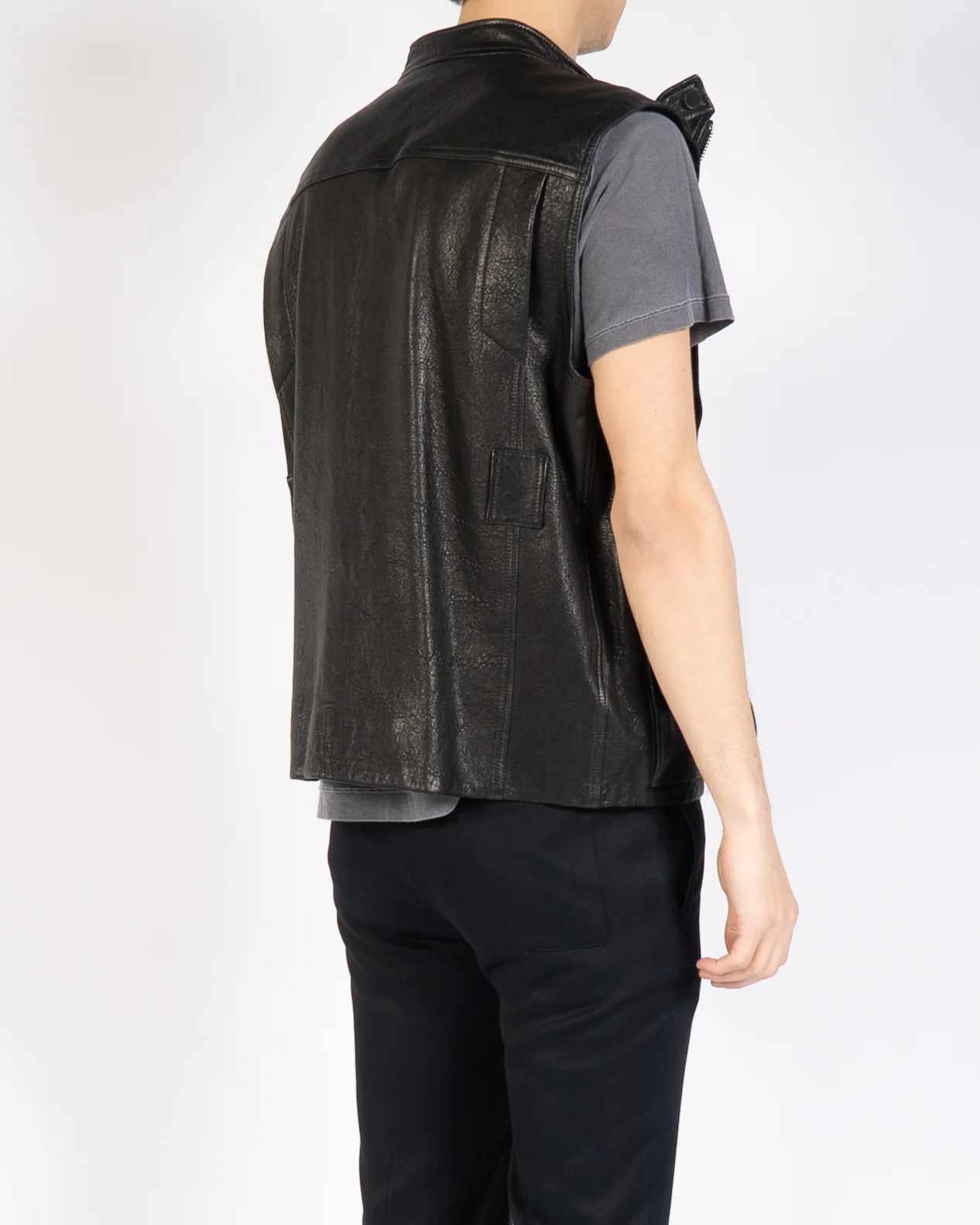 SS20 Black Leather Army Waistcoat